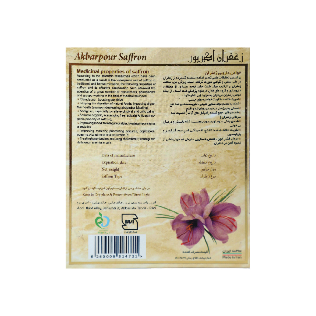 زعفران پاکتی 1 گرمی اکبرپور قیمت اصلی 298.000 تومان بود.قیمت فعلی 274.000 تومان است.